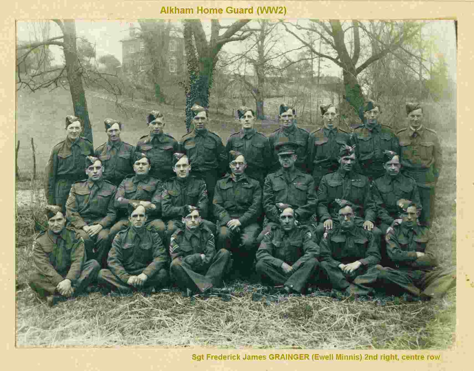 The boy at the back on the left is Harold Richards and next to him is Gordon Preston. Second from right on the front row is Louis Fagg, one of the Alkham Heroes. His sister, Hilda is fifth from left in the third row back. Third from left front row is Edward Henry Hall, 1918 to 2003. Centre in the front row is Henry Keeler, another Alkham Hero. His sister Ruth is fourth from right in the second row back. Far left on the third row is Ernie Couchman. He was a cousin of Louis Fagg and a brother of Ronald Couchman, another Alkham Hero. If you know any others, please mail brian@alkham.org