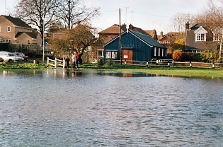 Across the flooded Meadow to the Village Hall |